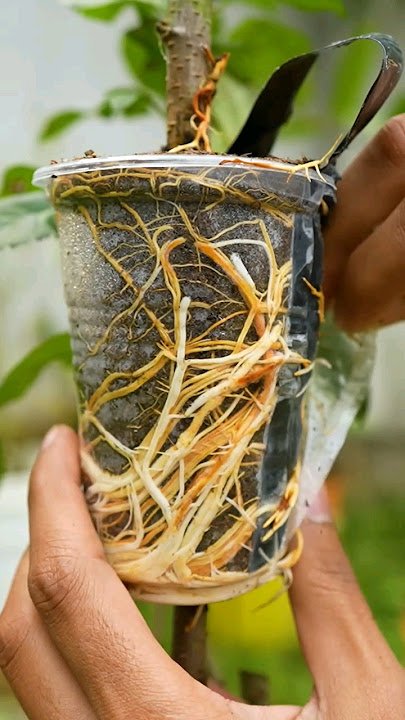 Once white or brownish roots are visible, the air layer is ready for harvesting.