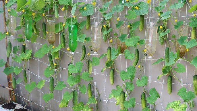 Vining cucumbers climb upward, producing more fruits without occupying floor space.