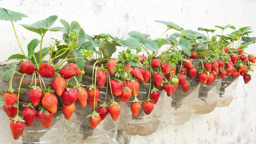 Strawberries are perfect for vertical gardens. They grow compactly, produce abundantly, and look gorgeous cascading down levels. Using plastic bottles offers many benefits: