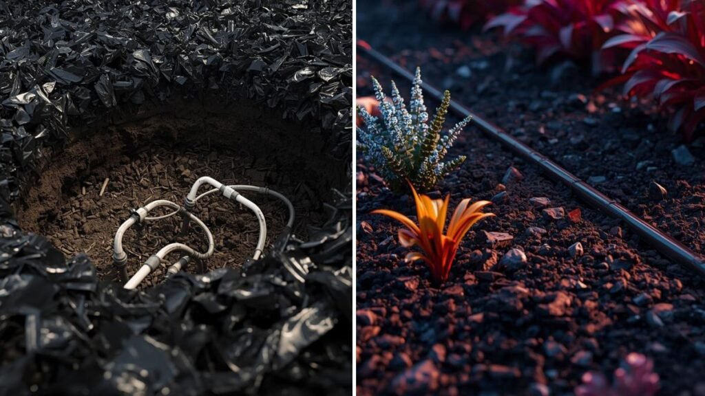 Drip irrigation is ideal under plastic sheets. Provides water directly to roots. Reduces evaporation and water wastage. Avoid overhead watering to prevent fungal infections. Monitor soil moisture regularly. Adjust irrigation based on crop type and weather. Watering efficiency is higher under plastic mulch. Consistent moisture improves plant vigor. Irrigation planning is essential for plastic gardening.
